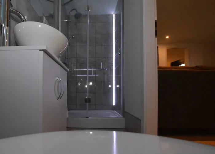 Die Unterkunft bietet einen Patio und eine Sitzecke zusammen mit einem Bügeleisen/Bügelbrett und einer Klimaanlage und Medieneinrichtungen wie einem Flachbildfernseher mit Satellitenkanälen. Der Innenraum ist mit einem Sofa ausgestattet und verfügt über einen Steinkamin. Zur Ausstattung des Badezimmers gehören eine begehbare Dusche und eine getrennte Toilette sowie ein Haartrockner und Badelaken.